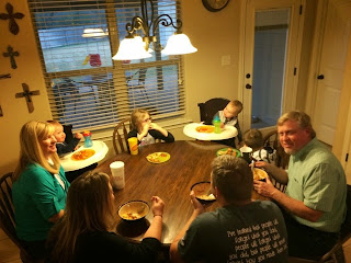 Saturday Morning Papa and Gram came over for Breakfast. I made them a yummy Texas Breakfast of eggs and bacon with biscuits and gravy. Saturday was cold and rainy, so I decided to make Chili for everybody for dinner. That way it could cook all day, and I wouldn't really have to worry about making dinner (I love meals like that!).